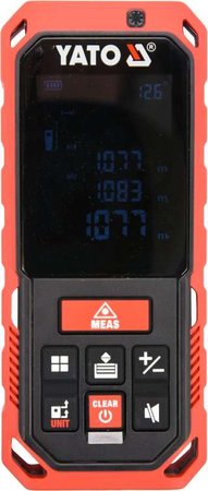 Dalmierz laserowy do szybkich i precyzyjnych pomiarów odległości w zakresie od 0,2-40 m. Posiada funkcje pomiaru ciągłego, obliczania powierzchni i kubatury , 3 typy pomiarów wg. twierdzenia Pitagorasa, pamięć 20 wyników, zmienny punkt rozpoczęcia pomiaru, zmianę jednostek pomiaru, ciągły pomiar kąta nachylenia podczas pomiarów odległości, odporny ekran , klasa ochronności IP65 , zasilanie 3 baterii typu AAA NiMh przez USB , wskaźnik stanu baterii . Wzmocnioną obudowę , krótką smycz ułatwiającą trzymanie. Do wykonywania pomiarów odległości i kubatury wewnątrz i na zewnątrz pomieszczeń w zakresie od 0,2 - 40 m Zgodnie z dołączoną instrukcją. Przed wymianą akumulatorów należy przesunąć pokrywę na tylnej ścianie urządzenia, zgodnie z kierunkiem strzałki następnie podważając pokrywę z boków unieść ją do góry i wysunąć . Wzmocnione uszczelnienie urządzenia zgodne z wymaganiami IP65 . Dalmierz , przewód USB ,smycz, pokrowiec.