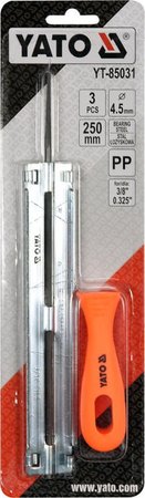 w zestawie pilnik okrągły, prowadnica i rękojeść z polipropylenu