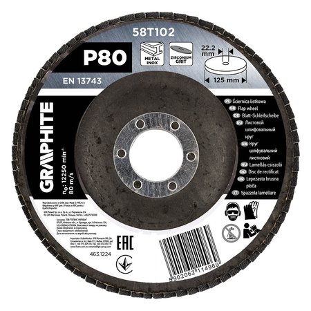 Ściernica listkowa cyrkonowa 125 x 22.2 mm, P80