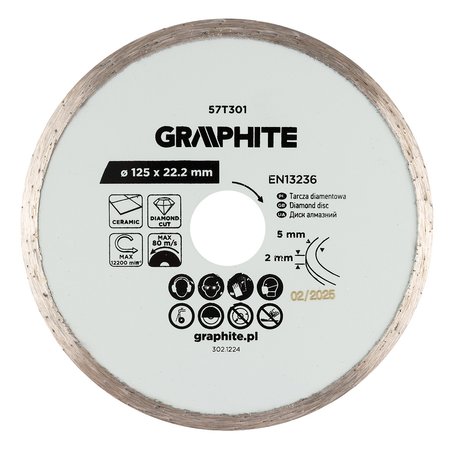 - Tarcza diamentowa do cięcia pełna, 125 x 22.2 mm, na mokro