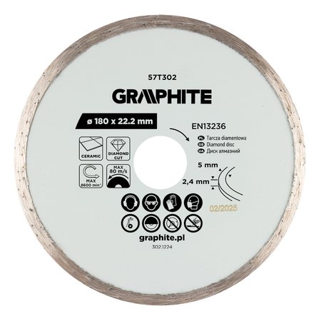 - Tarcza diamentowa do cięcia pełna, 180 x 22.2 mm, na mokro