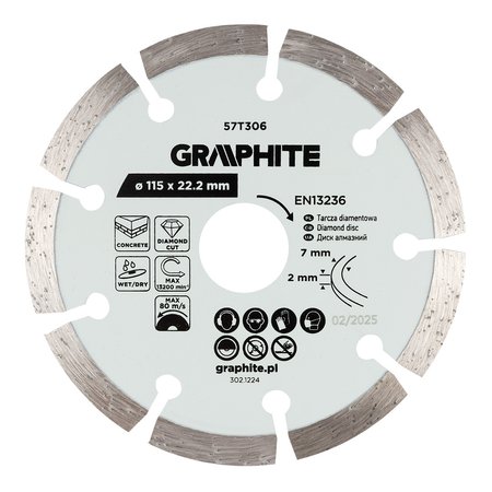 - Tarcza diamentowa do cięcia segmentowa, 115 x 22.2 mm, na sucho i mokro