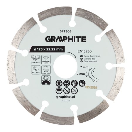 - Tarcza diamentowa do cięcia segmentowa, 125 x 22.2 mm, na sucho i mokro