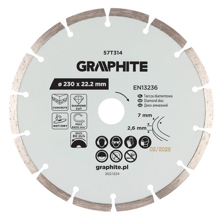- Tarcza diamentowa do cięcia segmentowa, 230 x 22.2 mm, na sucho i mokro