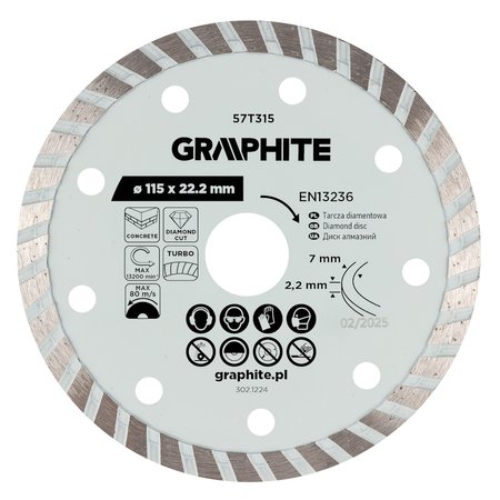 - Tarcza diamentowa do cięcia turbo, 115 x 22.22 mm, na sucho