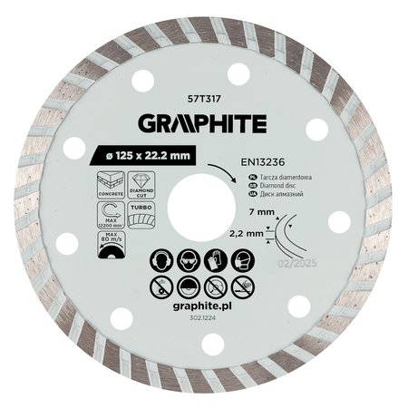 - Tarcza diamentowa do cięcia turbo, 125 x 22.22 mm, na sucho