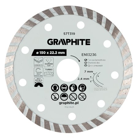 - Tarcza diamentowa do cięcia turbo, 150 x 22.22 mm, na sucho