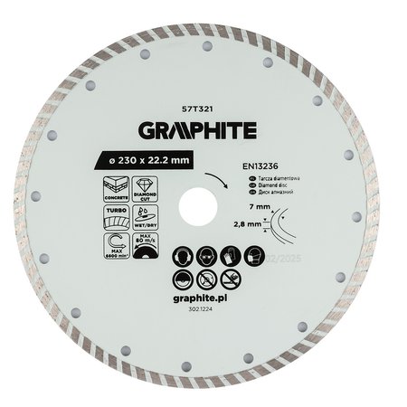 - Tarcza diamentowa do cięcia turbo, 230 x 22.22 mm, na sucho i mokro