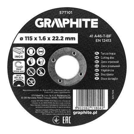 - Tarcza tnąca, korundowa do metalu/INOX 115 x 1.6 x 22.2 mm, 41 A46-T-BF