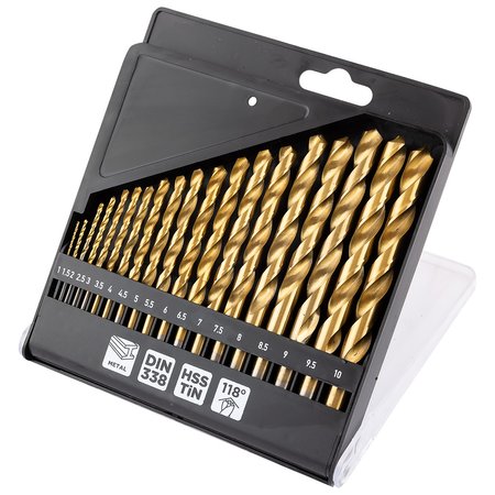 - Wiertła do metalu HSS TiN, 1 - 10 mm, zestaw 19 szt.