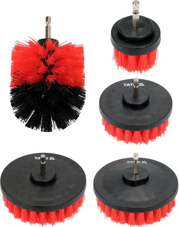 Zestaw pięciu szczotek na wiertarkę z uchwytem HEX.